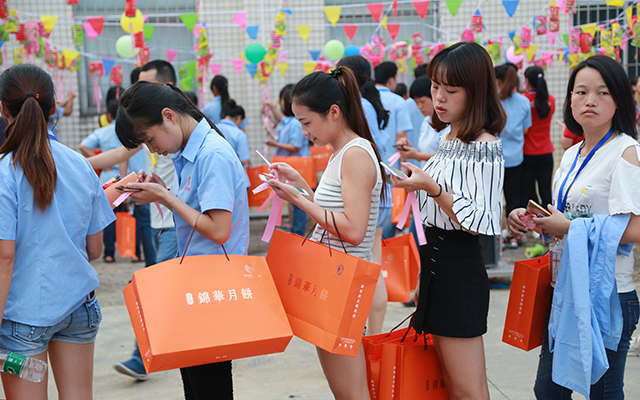 ◎ 員工現(xiàn)場(chǎng)領(lǐng)取月餅禮盒
