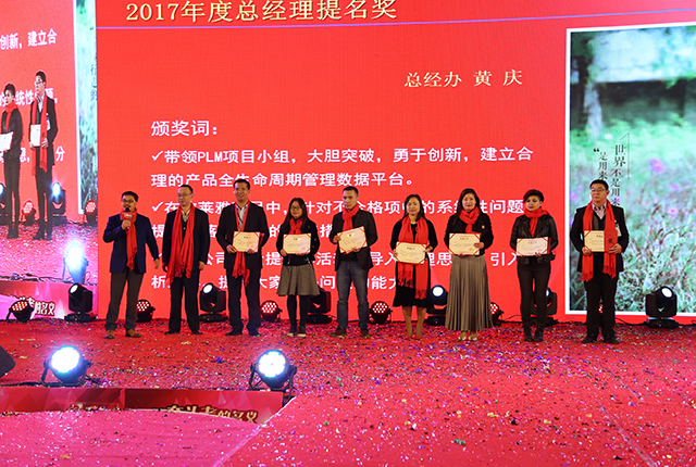 正如唐董所言,2017是不平凡的一年!過去的一年,公司除成功達(dá)成重大項(xiàng)目之外,還涌現(xiàn)了大批優(yōu)秀的團(tuán)隊(duì)、個(gè)人。為感謝他們?cè)诟髯詬徫簧细吨T的努力,公司依次頒發(fā)了優(yōu)秀項(xiàng)目獎(jiǎng)、優(yōu)秀團(tuán)隊(duì)獎(jiǎng)、明日之星獎(jiǎng)、棟方風(fēng)范獎(jiǎng)、總經(jīng)理提名獎(jiǎng)、十年忠誠獎(jiǎng)等十三個(gè)獎(jiǎng)項(xiàng),共計(jì)4大項(xiàng)目、5個(gè)團(tuán)隊(duì)與137名個(gè)人在此次年會(huì)上受到表彰。