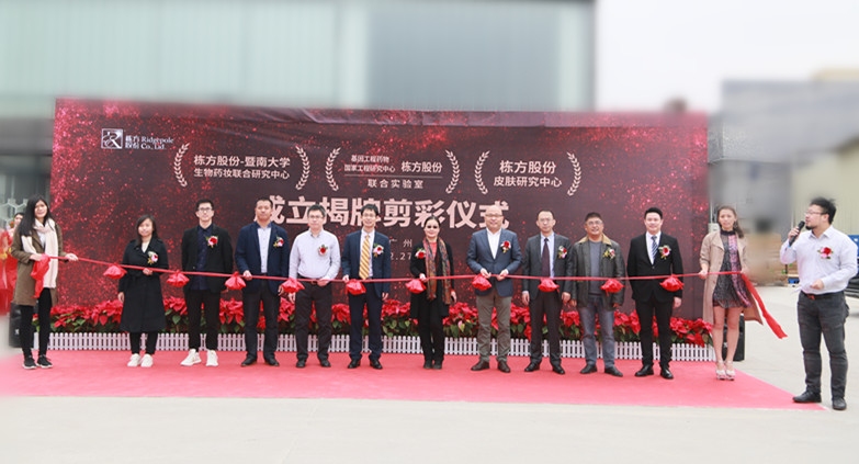 2018年12月27日上午,棟方股份技術(shù)合作揭牌剪彩活動在公司技術(shù)研究大樓一樓廣場隆重舉行,正式成立了“棟方股份--暨南大學生物藥妝聯(lián)合研究中心”、“棟方股份--基因工程藥物國家工程研究中心聯(lián)合實驗室”、“棟方股份皮膚研究中心”三大研究中心。此次生物藥妝技術(shù)重磅合作,在棟方技術(shù)創(chuàng)新發(fā)展史上具有重大里程碑意義。