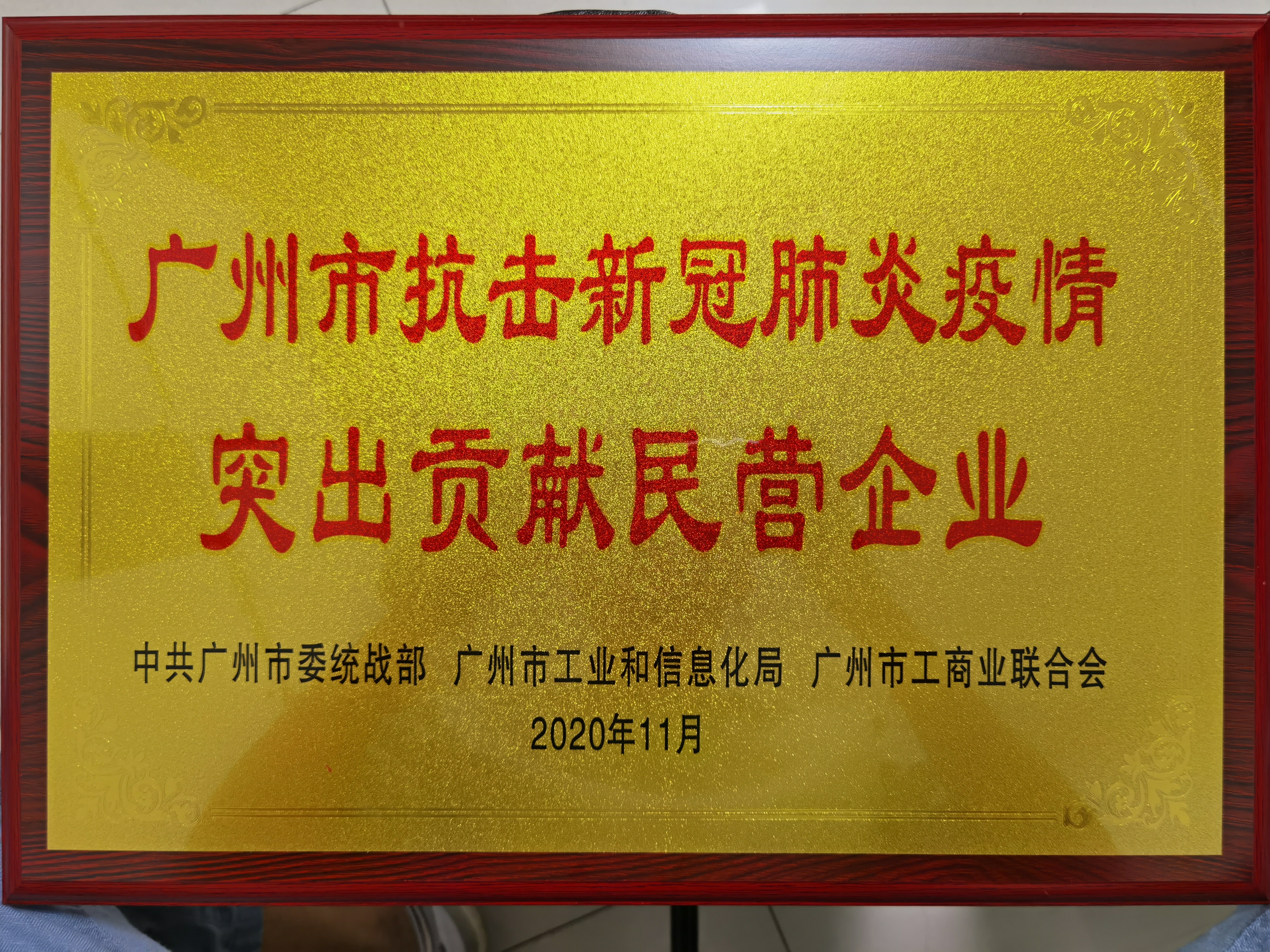 11月2日,中共廣州市委統(tǒng)戰(zhàn)部、廣州市工業(yè)和信息化局、廣州市工商業(yè)聯(lián)合會(huì)舉行大會(huì),活動(dòng)通報(bào)表?yè)P(yáng)了抗擊疫情中作出突出貢獻(xiàn)的民營(yíng)企業(yè)及商協(xié)會(huì)。棟方股份因積極投身慈善捐贈(zèng)、物資供應(yīng)、貫徹落實(shí)疫情防控,具有良好的示范性和先進(jìn)性,被評(píng)為“廣州市抗擊新冠疫情突出貢獻(xiàn)民營(yíng)企業(yè)”。